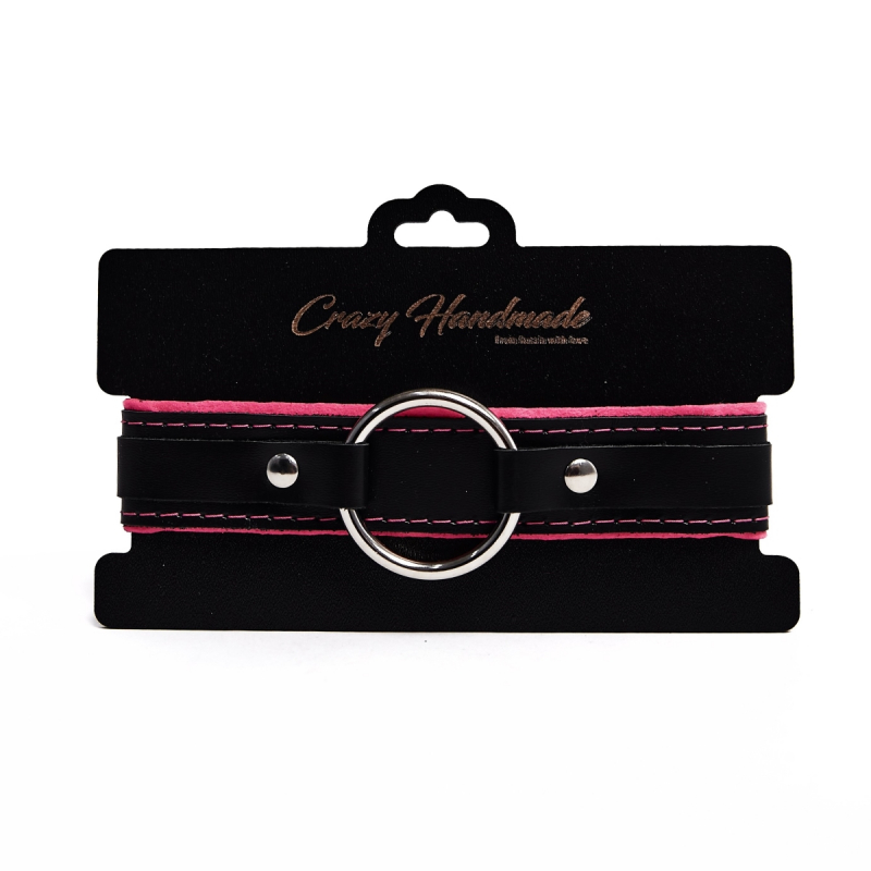 Ошейник с мягкой розовой подкладкой "Crazy Handmade" кожа